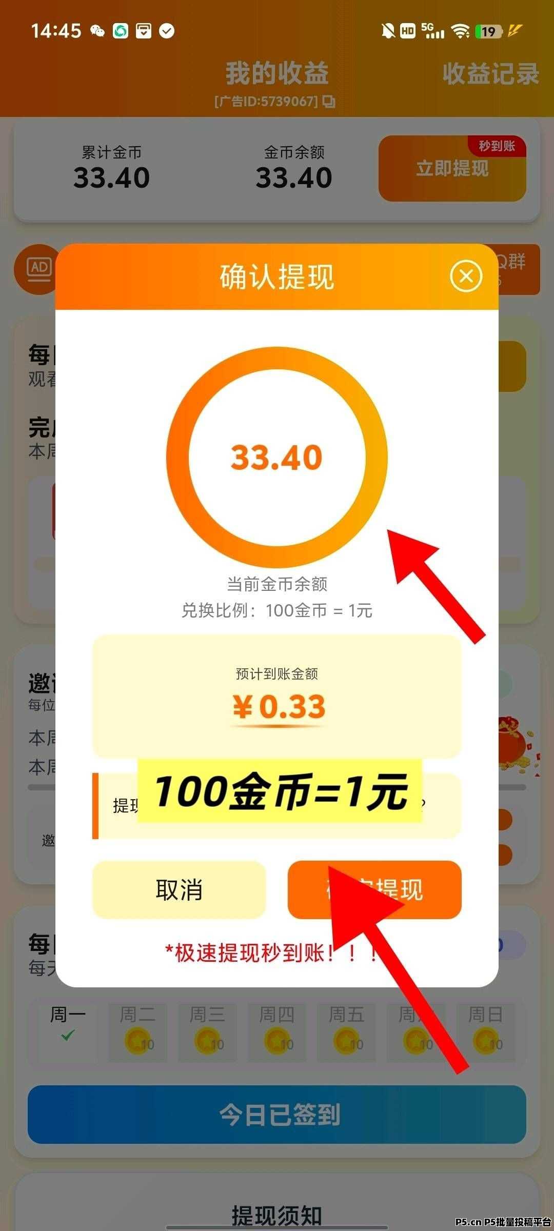 满0.3元即可提现