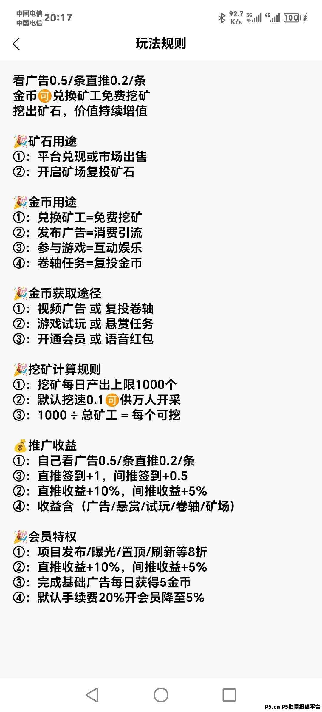 注册每日看20条广告,一条0.5金币,共奖励10金币